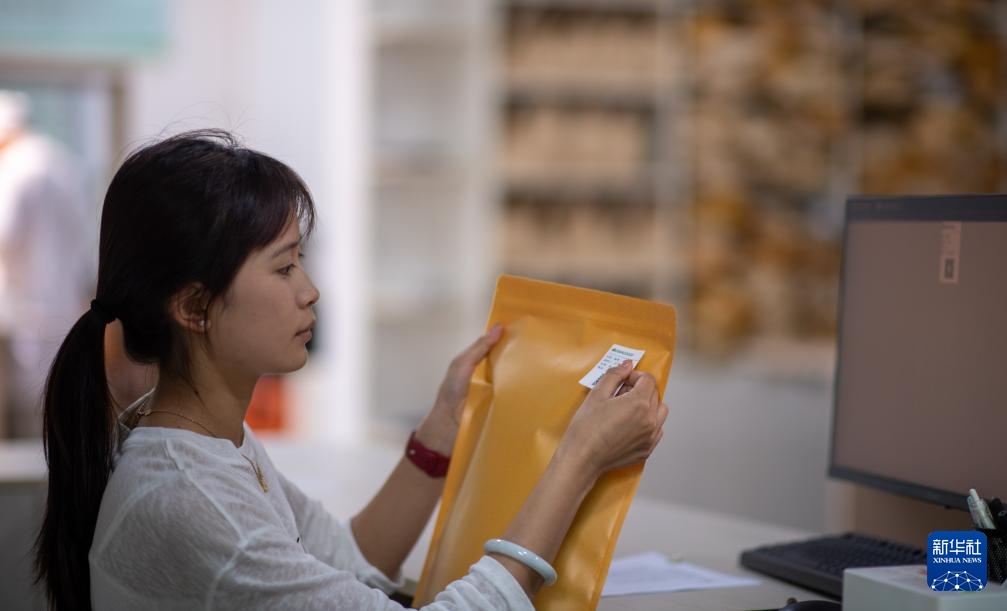 4月22日,云南省临沧市双江县茶叶检测品荐溯源中心的工作人员对送检茶叶进行登记。新华社记者 江文耀 摄